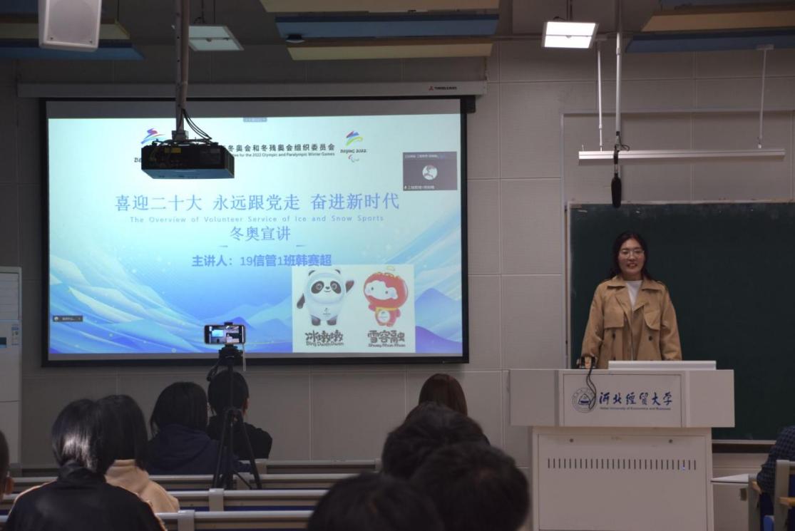 在北三教B201教室开展冬奥志愿服务宣讲活动,由冬奥志愿者韩赛超、张赛主讲,2022级全体学生参加。