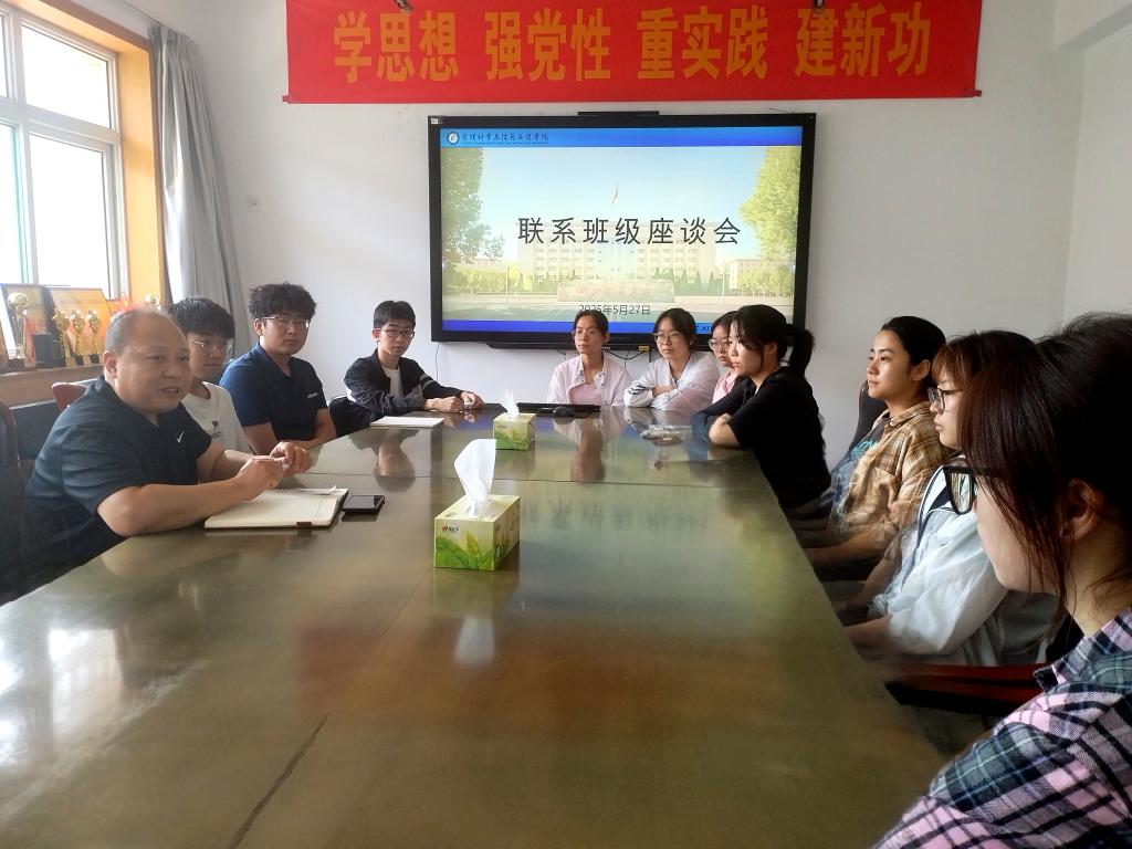 为扎实推进深入贯彻中央八项规定精神学习教育,5月27日下午,学院召开联系班级学生座谈会。学院党委书记王剑彪与2024级大数据应用与管理1班、2班的学生骨干进行了座谈交流。