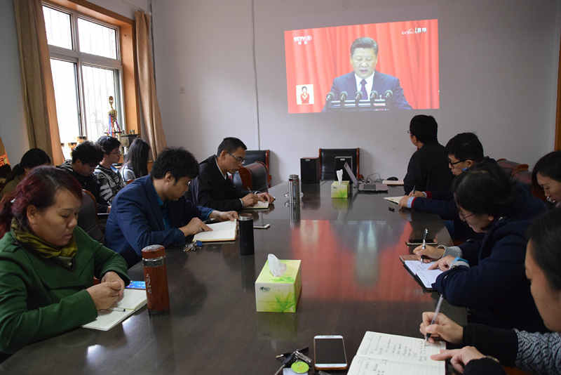 大家认真聆听了习近平总书记作的题为《决胜全面建成小康社会,夺取新时代中国特色社会主义伟大胜利》的报告。报告提出了四个重要概念,一是中国特色社会主义进入了新时代,二是我国社会主要矛盾已经转化,三是新时代中国特色社会主义思想,四是社会主义现代化强国。三个半小时的报告内容充实,习近平主席的话振奋人心、掷地有声。