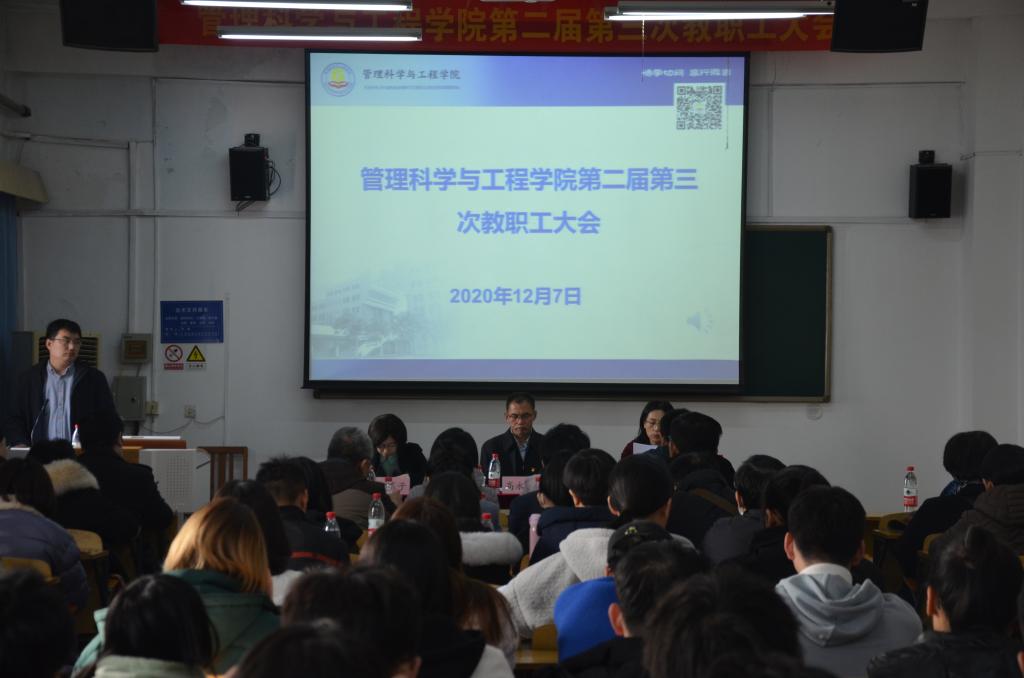 此次教职工大会是在学院实施绩效工资改革和新财经教育改革首年召开的大会,对今后深入推进各项改革,促进学院早日实现我省财经特色鲜明的高水平管科学院的建设目标具有重要推动作用。