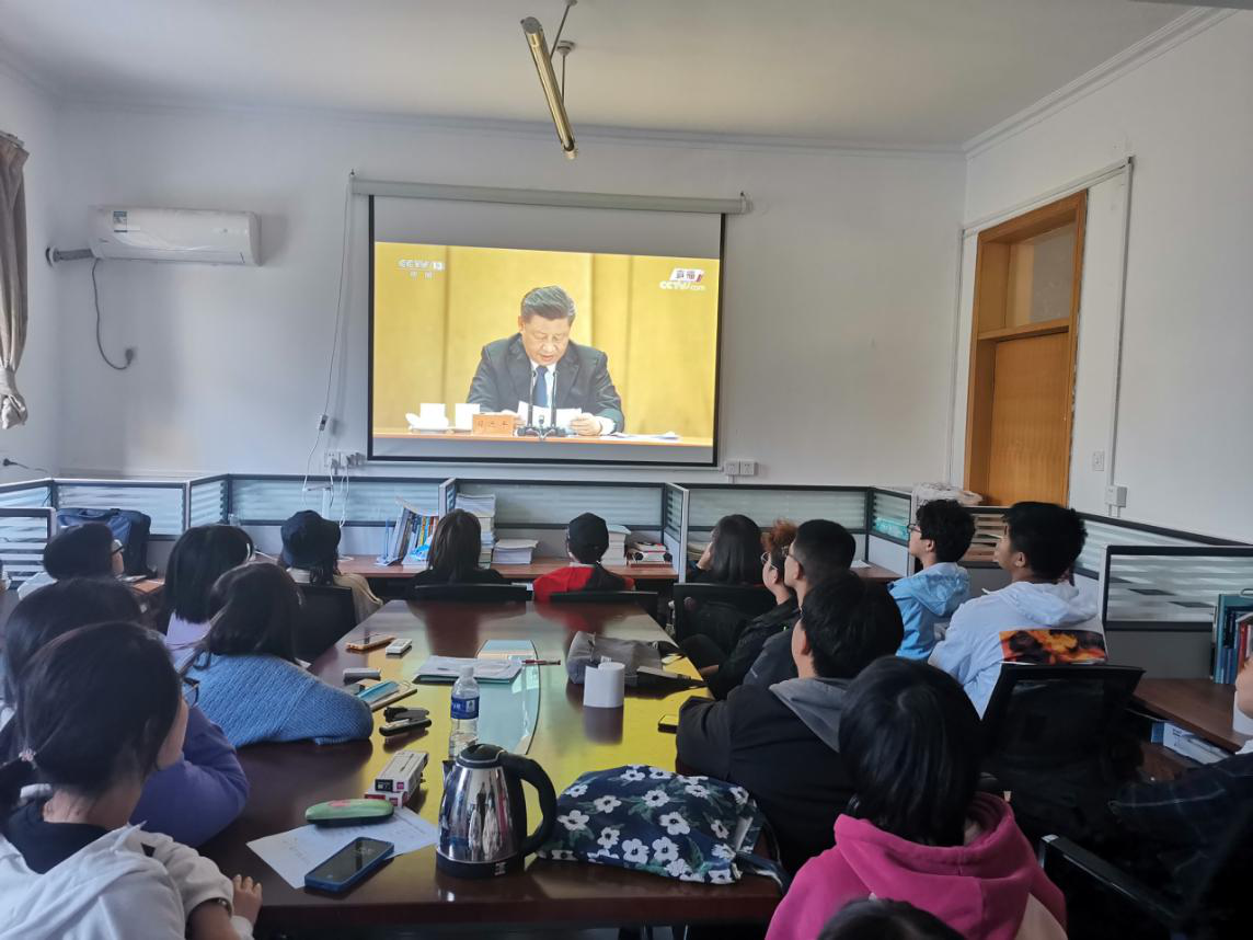 习近平总书记在纪念大会上全面回顾总结了抗美援朝战争的伟大胜利和巨大贡献,深刻阐述了抗美援朝精神的历史意义和时代价值,精辟揭示了抗美援朝战争的历史启示,郑重宣誓了捍卫国家领土主权和统一、维护地区和世界和平稳定、推动构建人类命运共同体的坚定立场和决心。观看过程中,学院师生心潮澎湃,大家对老一辈领导人的英明决策和朝鲜战场英雄们的英勇斗争充满敬意,深感祖国如今发展成就来之不易。