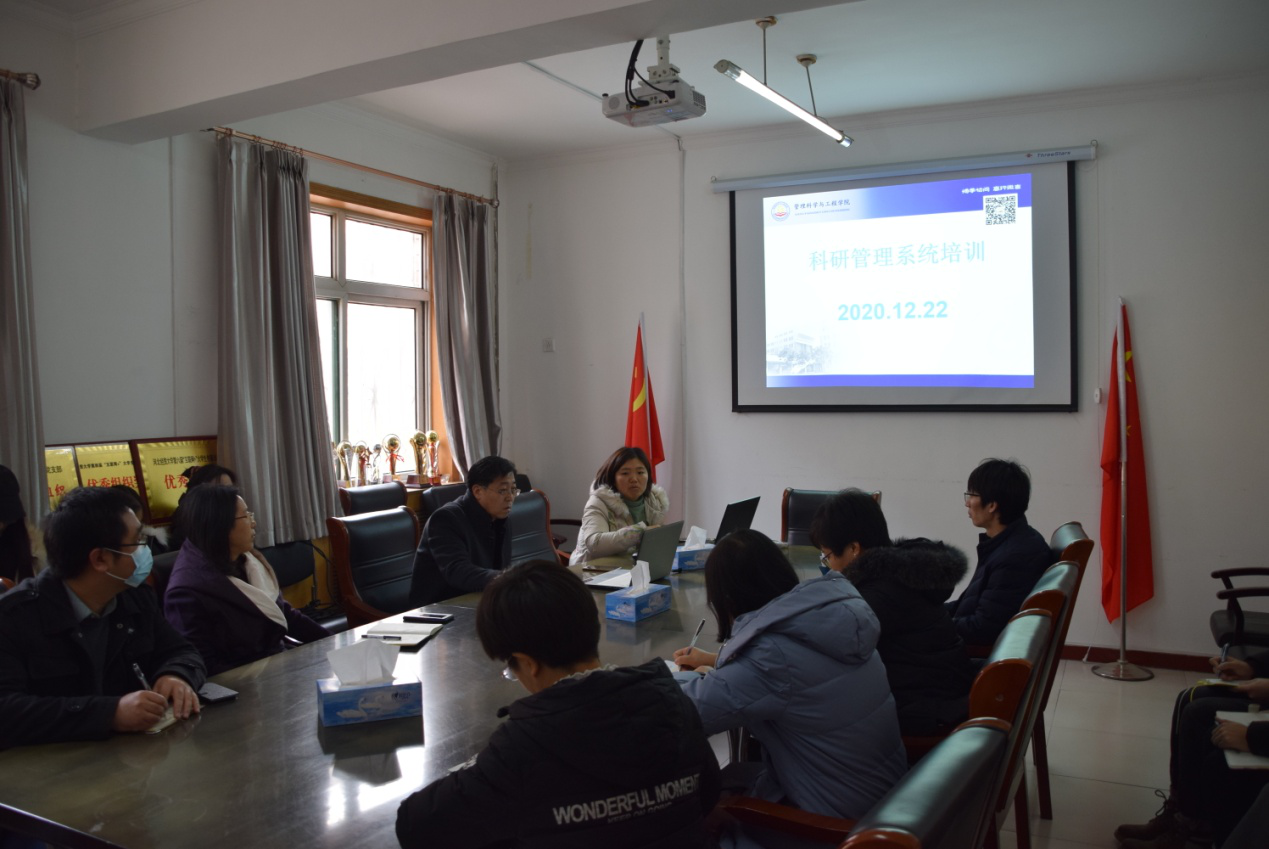 12月22日下午在学院会议室举办《科研管理系统》培训,培训由祁红梅院长主持,学院科研秘书马芸芸主讲,全体教师参加了此次培训。