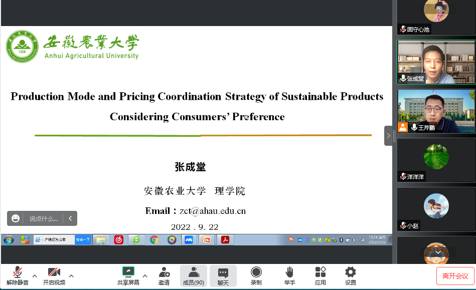 邀请安徽农业大学张成堂教授在线做题为《考虑消费者偏好的可持续产品生产模式与定价策略》学术讲座。讲座由学院副院长王芹鹏主持,性爱网站