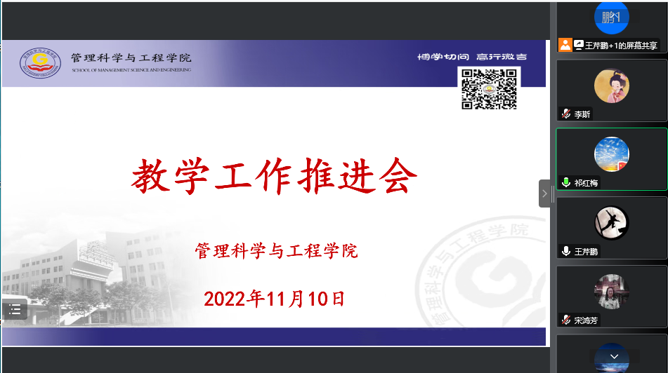 在线上召开教学工作推进会。会议由副院长王芹鹏主持,院长祁红梅及全院教师参加。
