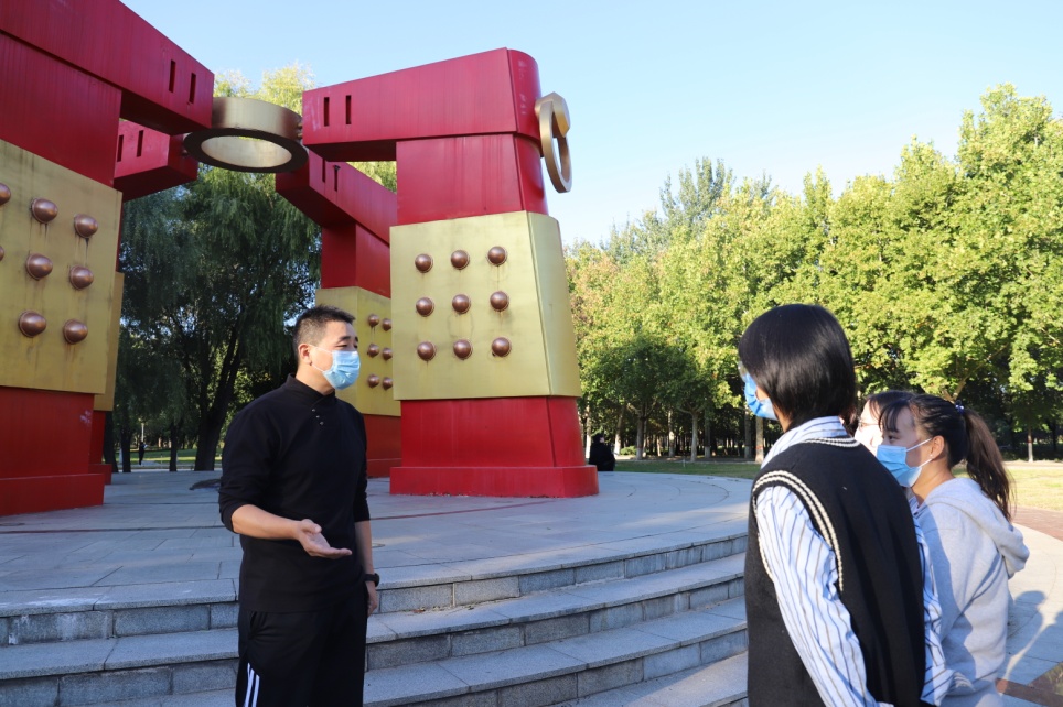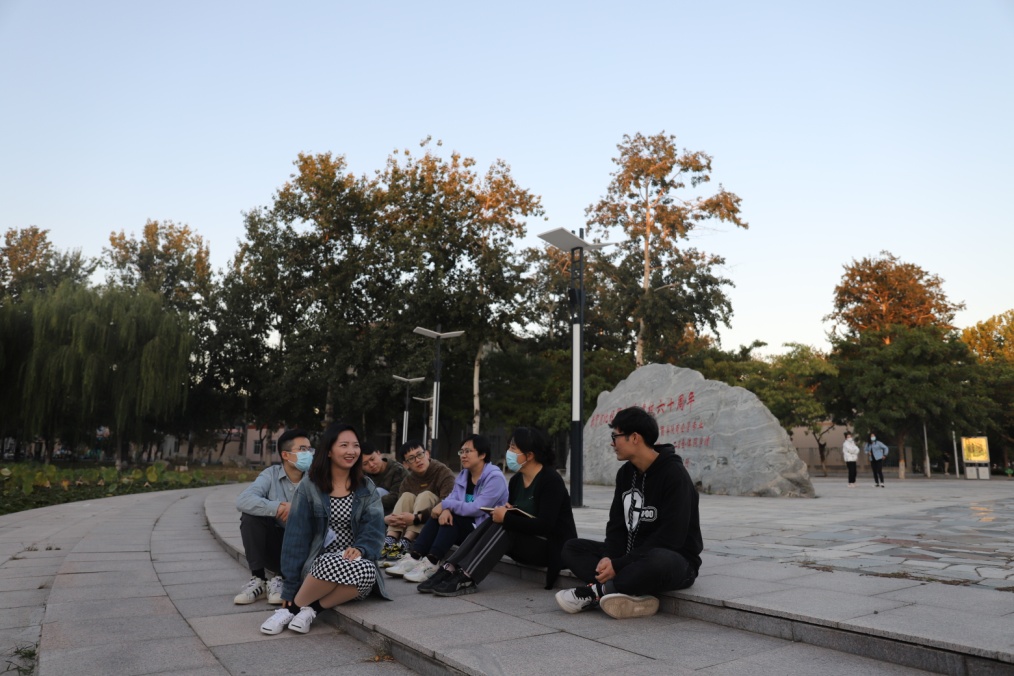 副书记李丽与2021级工程管理专硕研究生在荷花池旁座谈。她提出,在2022年疫情形势影响的经济背景下,要抓住就业机遇,勇于迎接挑战,鼓励在校研究生向优秀研究生看齐。