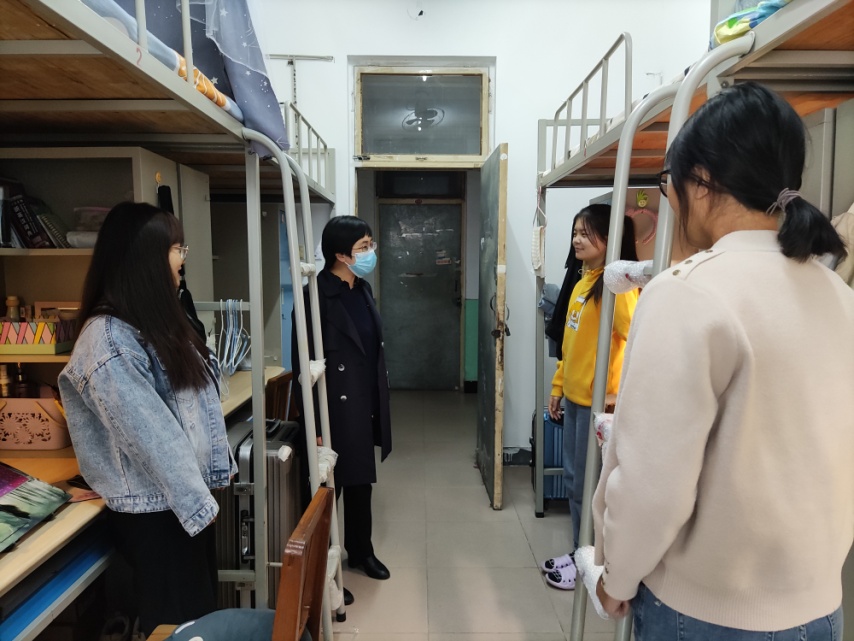 研究生辅导员曹洋深入研究生宿舍,与同学们亲切交谈,就读书、学习、就业等大家关心的话题进行了深入交流,叮嘱同学们一定要严格遵守学校疫情防控要求,并提醒同学们定期主动向导师汇报学习生活情况。