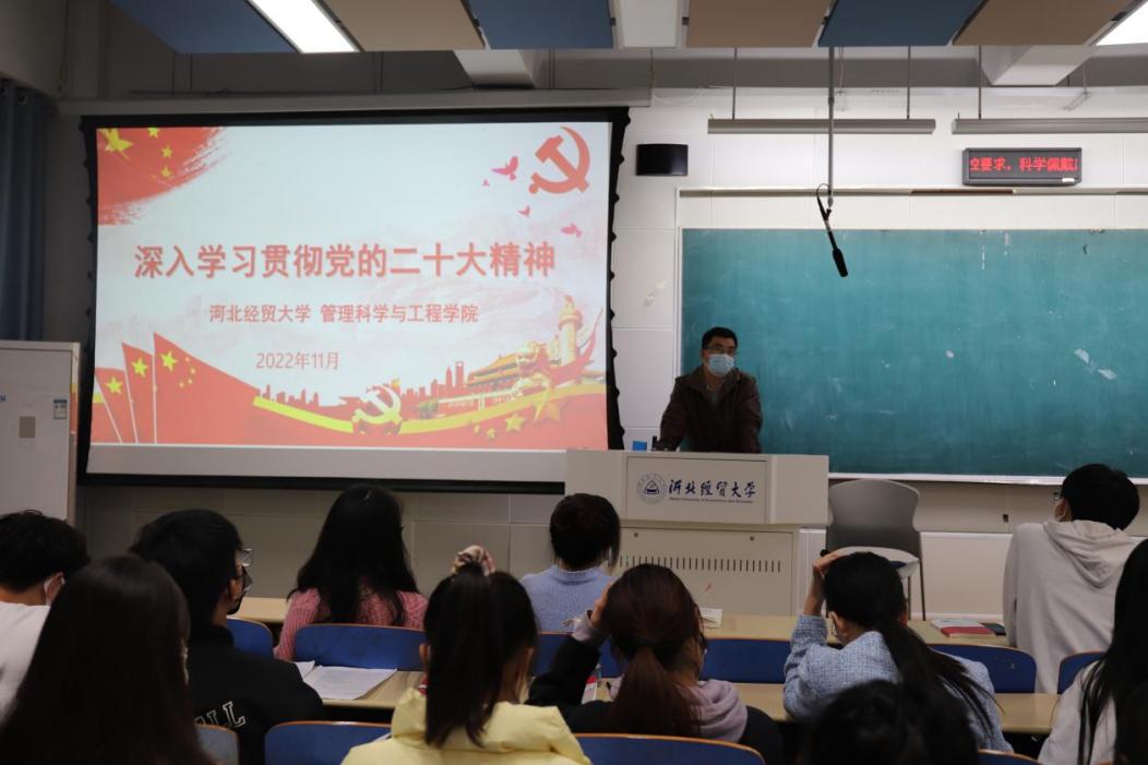 组织2022年入党积极分子,开展“学习贯彻党的二十大精神”专题党课,党课由学院专职组织员宋智广主讲。