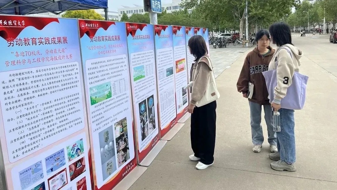 本次劳动教育成果展分为海报设计大赛成果展区和特色劳动成果展区两个部分。其中,海报设计大赛以“喜迎70校庆,劳动最光荣”为主题,将劳动教育与专业学习、就业创业、志愿服务、理想信念紧密结合,展现了管科学子劳动创新的风采掠影;特色劳动成果展区通过“劳动+”主题系列活动,展示了劳动教育实践中的“管科行动”及其取得的成效。