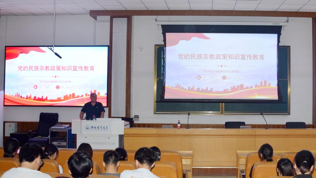 开展党的民族宗教政策宣传教育。学院党委书记王剑彪为全体新生做了专题报告,回顾了党的民族宗教政策百年创新与发展历程,结合发生在身边的真实案例,对党的宗教政策做了详细讲解,引导教育学生坚持马克思主义宗教观,铸牢中华民族共同体意识,崇尚科学,反对邪教,用科学理论武装头脑,不断提高科学文化素养。
