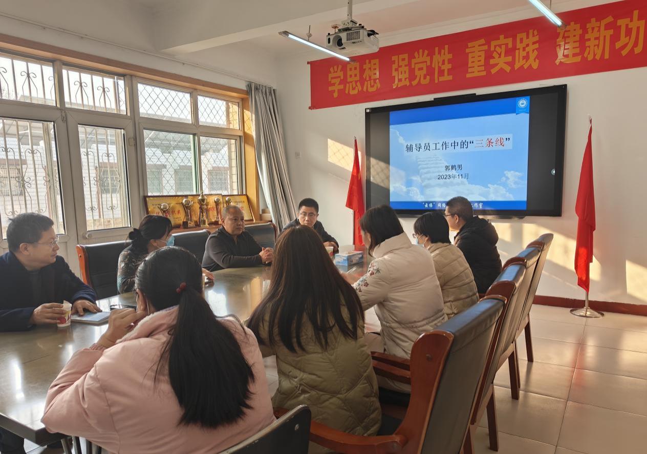 郭鹤男结合自身工作经验,提出辅导员工作中的“三条线”: 确保学习提升的基线、抓住立德树人的主线及守住安全稳定的底线三方面展开叙述。他指出,通过学习政策文件、先进典型、身边的人、期刊书籍等确保学习提升基线,通过“1+1+X”体系抓住立德树人主线,通过抢占网络阵地、提升危机处理等守住安全底线。同时,会议结合“今天我们这样爱国”主题党日活动和网络思政内容开展学习讨论。