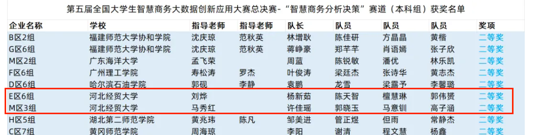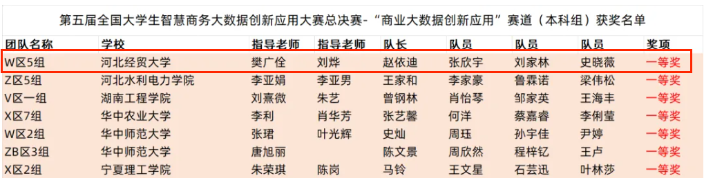 代表队在第五届全国大学生智慧商务大数据创新应用大赛(本科组)中荣获一等奖1项、二等奖2项。