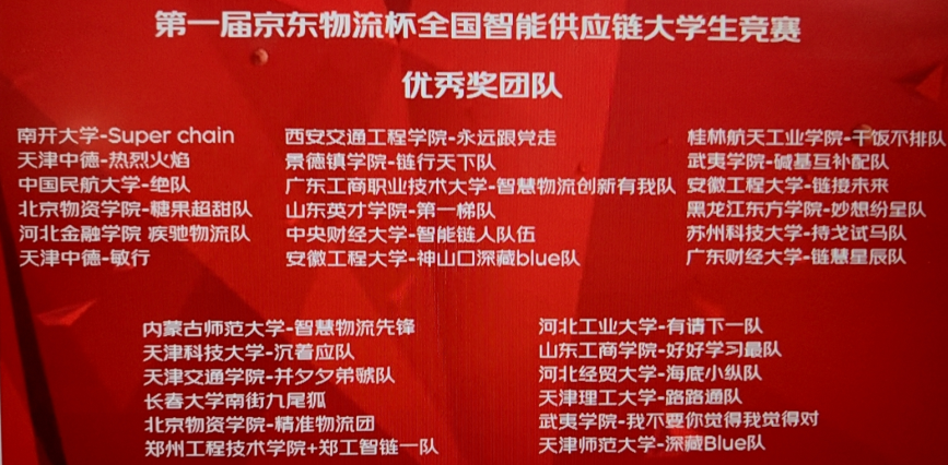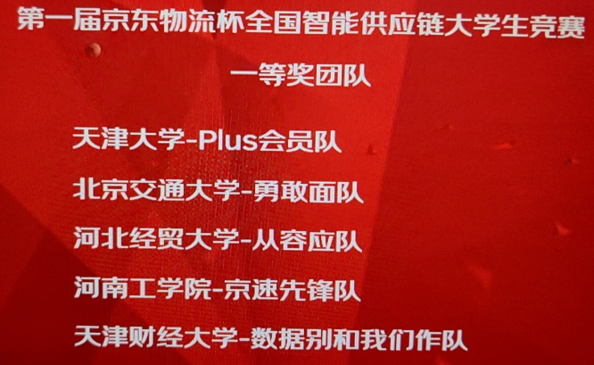 两个代表队赴天津大学参加第一届“京东物流杯”智能供应链大学生竞赛,荣获一等奖1项、优秀奖1项。