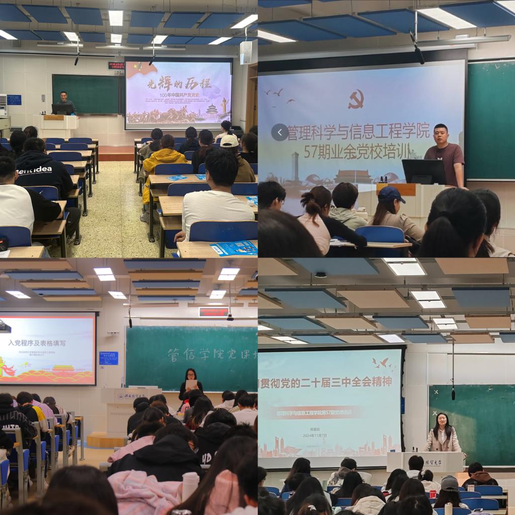 处级辅导员韩玉强作党史、党的二十大报告、《中国共产党章程(修正案)》专题培训。专职组织员姚馨彩作党的二十届三中全会精神、党的纲领、入党动机专题培训。团委书记梁旭辉作党的组织制度、纪律和作风专题培训,为学生重点讲解《中国共产党纪律处分条例》。学生党支部书记李格珲作入党程序及表格填写专题培训。