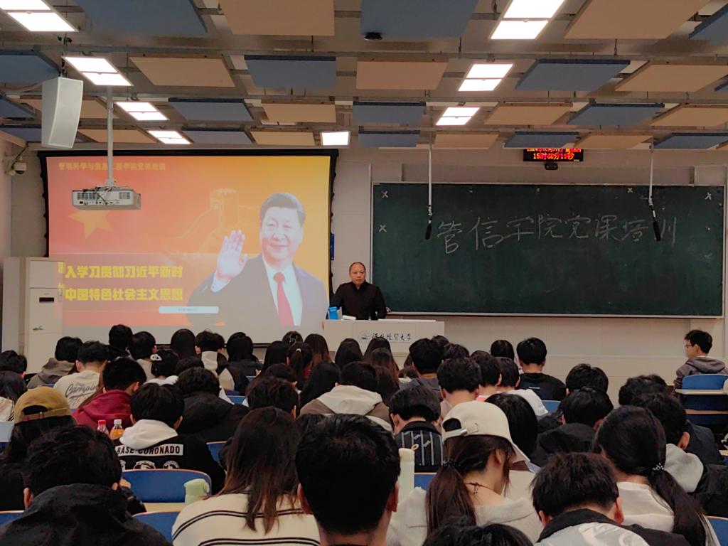 学院党委书记王剑彪以“深入学习贯彻习近平新时代中国特色社会主义思想”为主题,讲授了一次内涵丰富、意义深远的党课。王剑彪运用生动的语言和丰富的视听资料,全面而深入地解读了习近平新时代中国特色社会主义思想的核心要义、理论架构,引导学生深刻把握这一重要思想的世界观、方法论,坚定不移地坚持和运用其中的立场、观点、方法,持续深化对党的创新理论的政治、思想、理论和情感认同,确立对马克思主义的信仰、对中国特色社会主义的信念以及对实现中华民族伟大复兴的中国梦的信心。