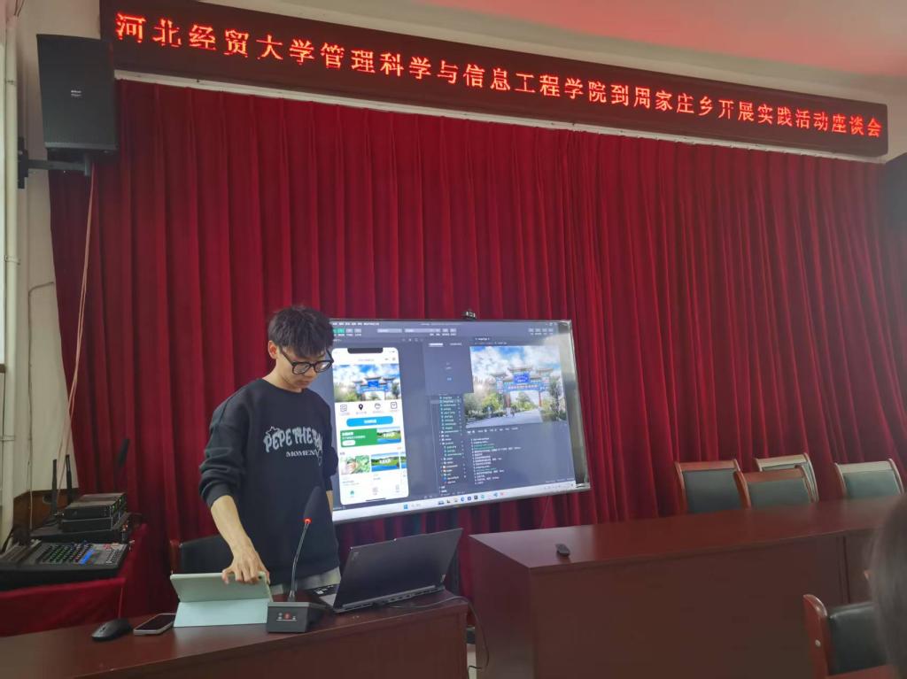 组织学生代表前往晋州市周家庄乡社会实践实习基地开展交流。学院和周家庄乡联合探索以实际需求为导向的课程实践改革,启动以“需求导向、实践育人”为主题的产学合作项目,经过半年的探索与实践,学生团队结合周家庄乡文旅产业发展需求,开发出系列数字化成果,在实践过程中,他们不仅提升了技术和沟通表达能力,同时提升了自我价值和社会认知。