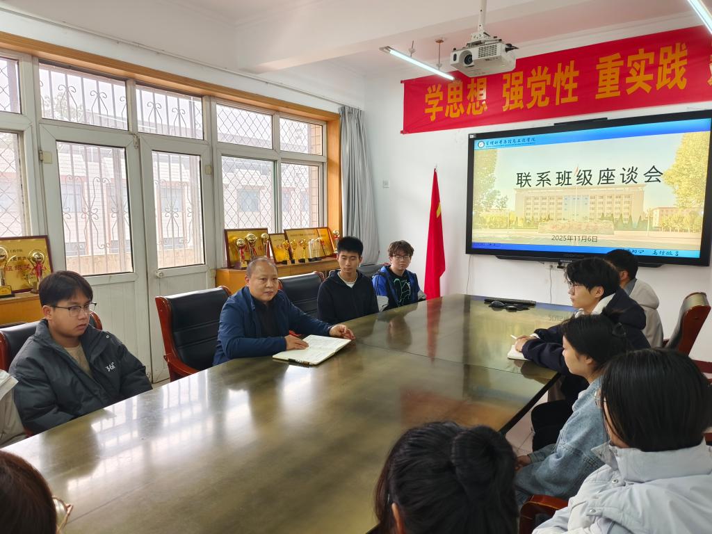 11月6日下午,学院党委书记王剑彪与联系班级开展座谈交流,2025级计算机科学与技术1班班委、宿舍长参加座谈。