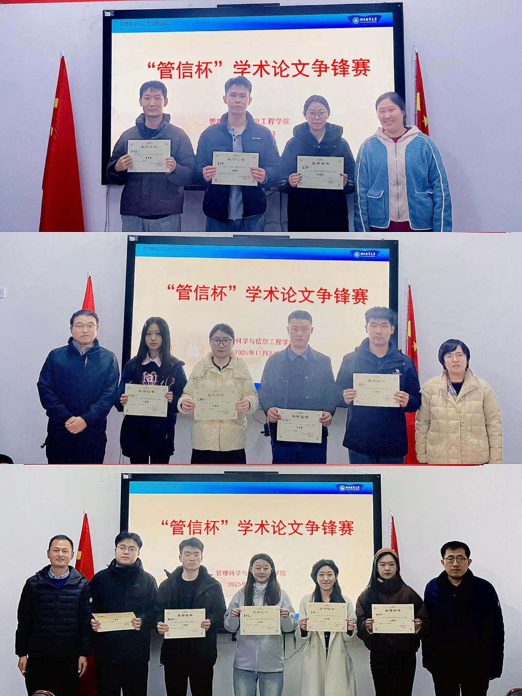 举办首届“管信杯”学术论文争锋赛。11月24日下午,决赛展示在学院会议室举办,副院长王芹鹏出席,部分青年骨干教师担任评委, 30余名研究生参加。