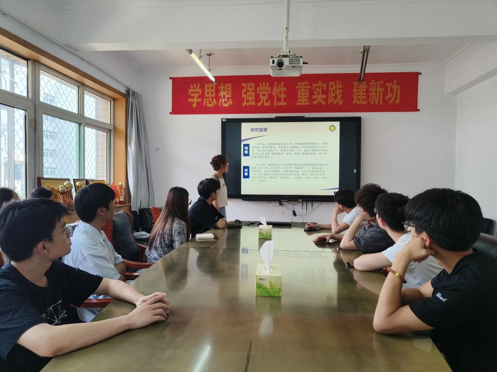 在三办二楼中厅会议室开展学术沙龙第六期活动。本次活动由2023级管理科学与工程专业研究生宋晓宇围绕“京津冀地区水资源承载力多情景模拟:基于人口与经济的考量”这个主题进行分享。学科秘书曹洋老师主持,研究生20余人参加。