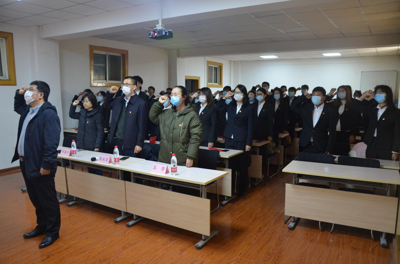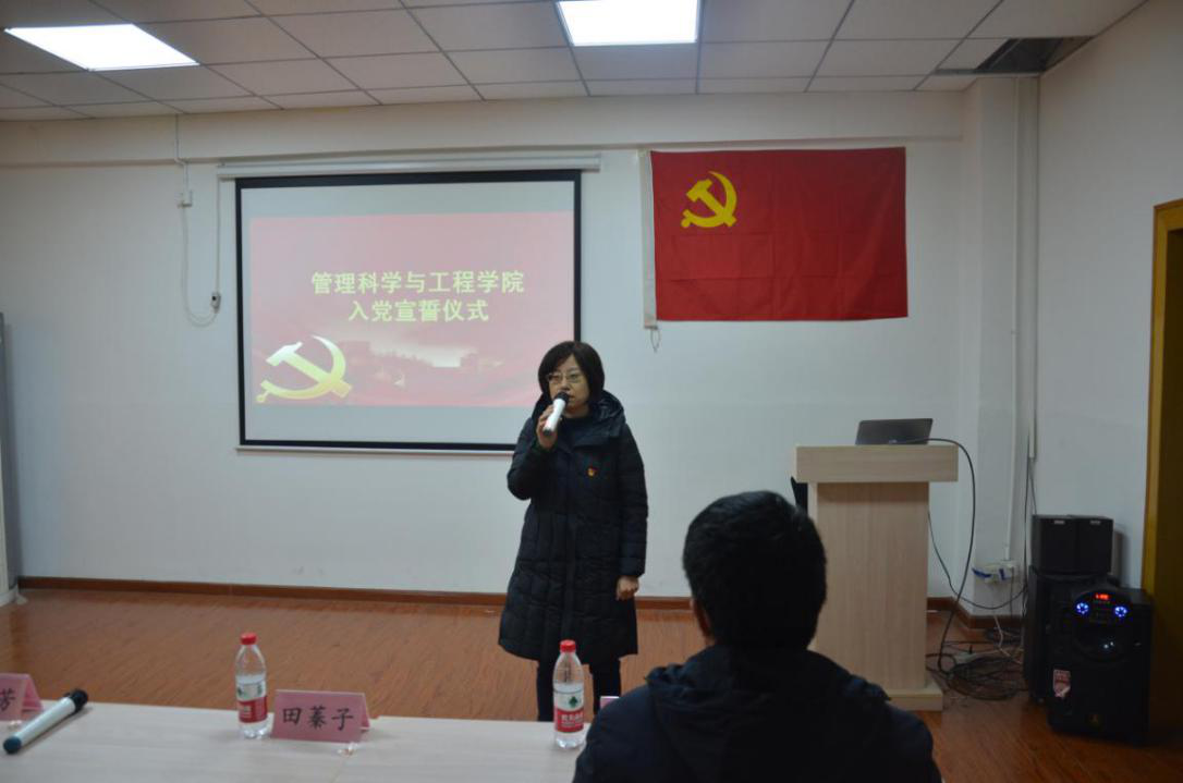 在一教408教室举行预备党员入党宣誓仪式。学院党委书记高永芳、学院党委副书记田蓁子、第二学生党支部书记王芳出席,学院新37名预备党员参加。仪式由学院党务办公室负责人宋智广主持,