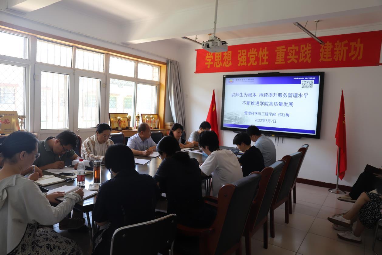 7月7日上午,管理科学与工程学院领导班子成员分别讲授主题教育专题党课,学院全体行政人员、党支部书记、辅导员、教师代表参加学习。