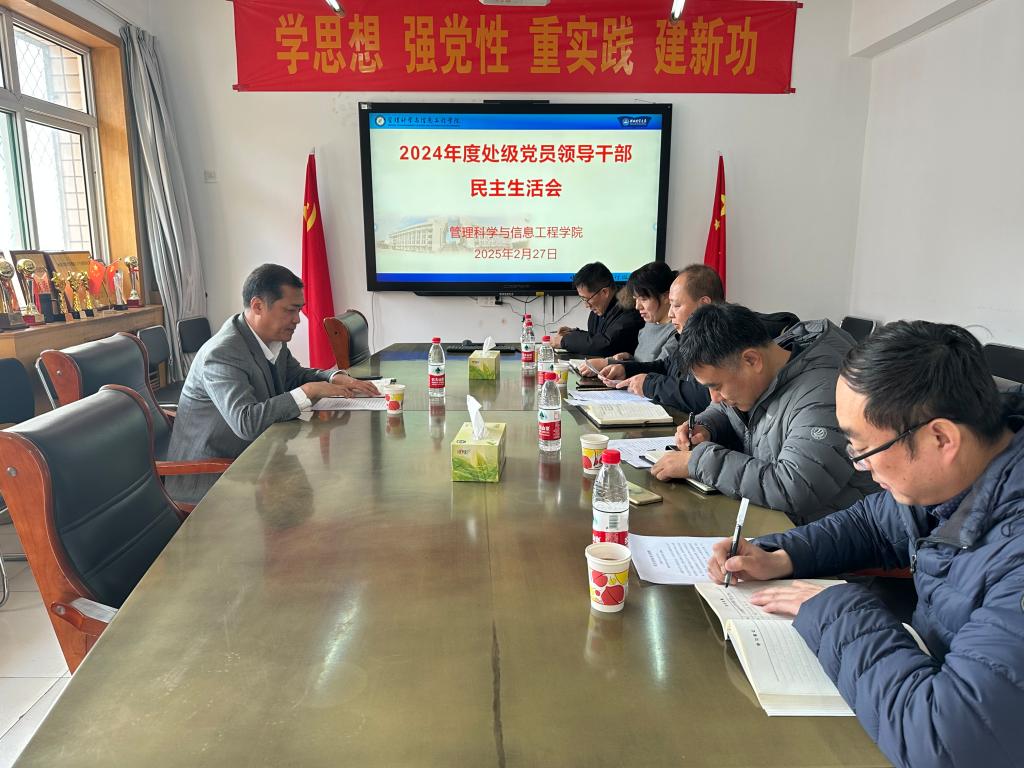2月27日下午,学院召开2024年度处级党员领导干部民主生活会。校党委副书记张秀山到会指导,学院党委书记王剑彪主持会议,学院领导班子成员参加。