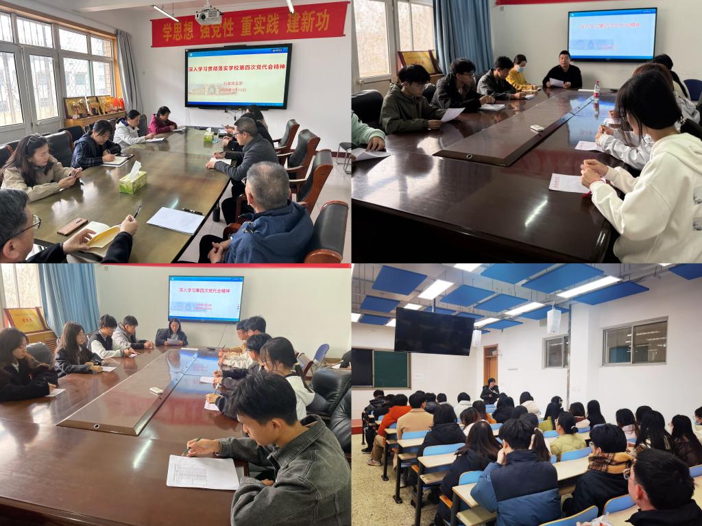 学校第四次党代会以来,学院党委迅速行动,组织开展宣讲、座谈等活动,深入学习贯彻党代会精神,积极谋划推动学院各项工作高质量开展。学院20个师生党支部、10个教学系(教研室)依托“三会一课”、集中返校等形式,组织全体党员、教师深入学习研讨党代会报告,迅速掀起了学习热潮,以实际行动推动党代会精神落地生根。
