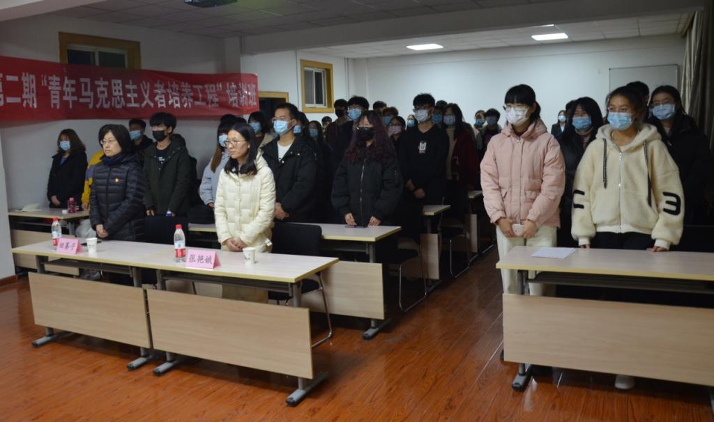 在第一教学楼408教室举行第二期青年马克思主义者培养工程开班仪式,学院党委副书记田蓁子、学院团委书记张艳娥以及54名学员参加。