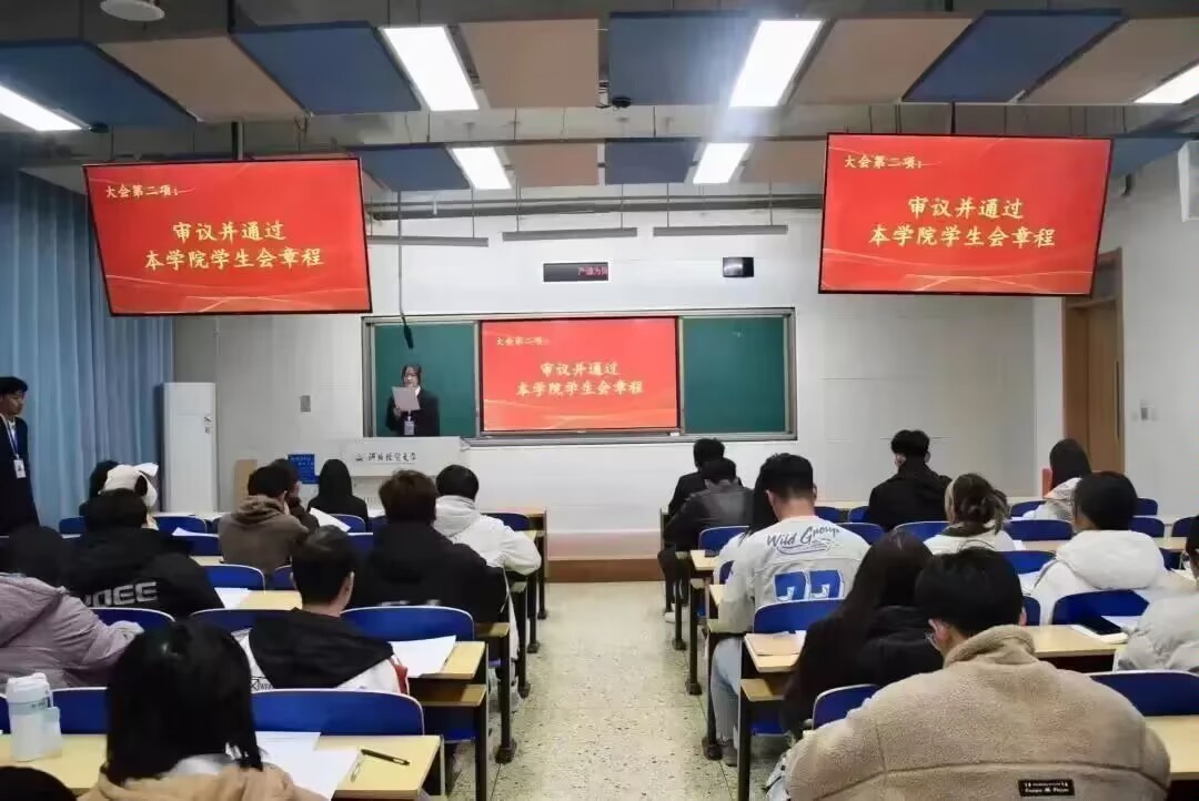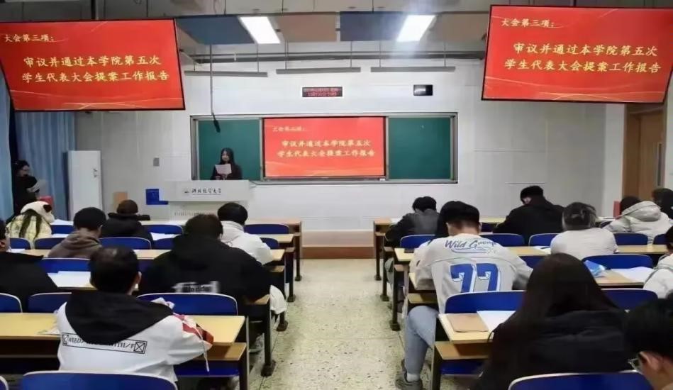 会议上,学生代表审议通过了学院学生会章程和第五次大学生代表大会提案工作报告。
