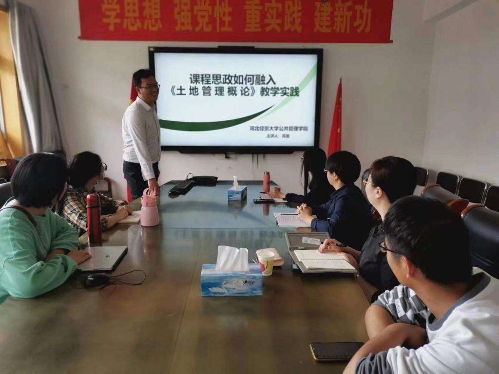 高星从课程思政的背景、教学目的和意义具体阐述了《土地管理概论》课程思政元素的挖掘路径,并指出可以从知识单元、知识点、相关法律制度、课程实践、国家战略和社会热点中深入挖掘思政元素。活动中,与会老师还就指导学生、校企合作等相关问题进行了交流讨论。