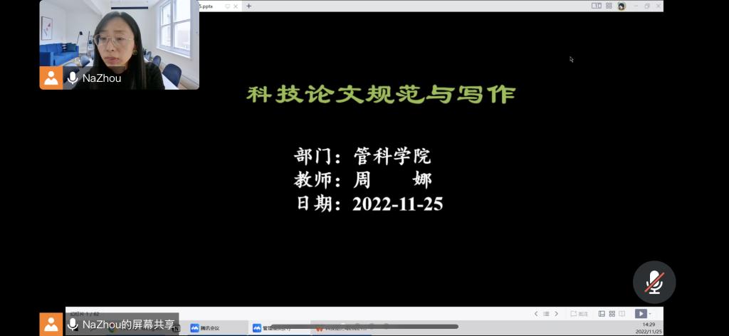 周娜博士通过腾讯会议做了题为“科技论文写作规范”的学术讲座。学院教师、研究生30余人参加了此次讲座。