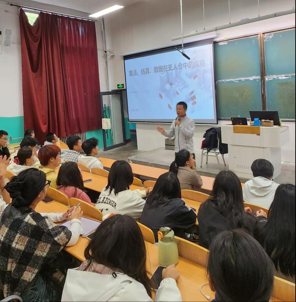 邀请京东物流产业学院教授、资深算法专家范超博士进行题为《算法、仿真、数据在无人仓中的应用》的讲座,开展校企合作“双向奔赴”活动,21、22、23级智慧物流实验班师生200余人参加了讲座。