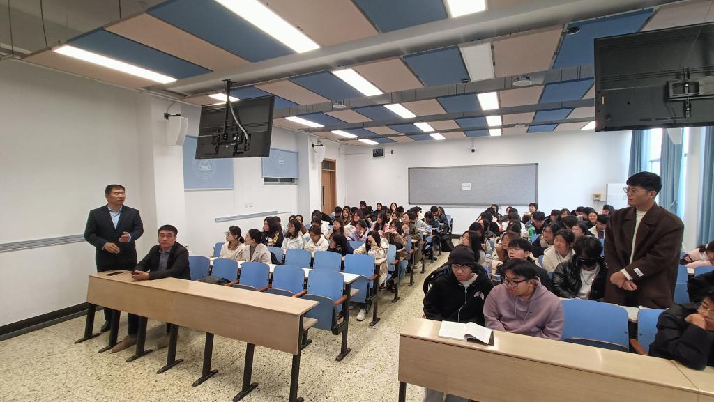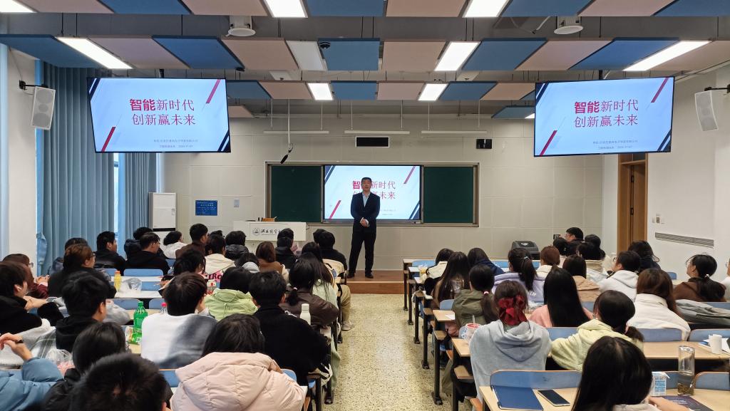 数据科学与大数据技术系邀请了石家庄赛高电子科技有限公司总工程师樊永生在三教A304教室进行了题为《智能新时代、创新赢未来》的专题讲座。石家庄赛高电子科技有限公司总裁李铮、系主任魏若岩、全体24级数据科学与大数据技术专业学生以及部分教师代表参加了此次讲座。