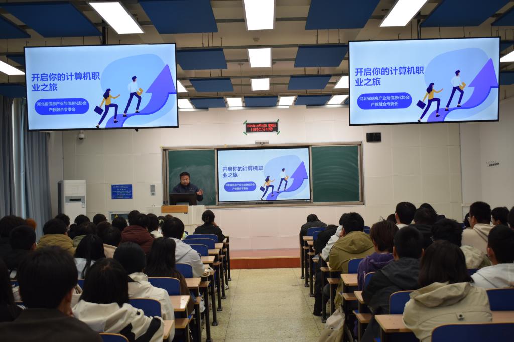 2025年10月22日,为助力大一新生深入了解计算机行业的发展前景与职业方向,性爱网站 计算机科学与技术专业精心举办了一场别开生面的专业导论课程。此次课程邀请河北省信息产业与信息化协会产教融合专委会赵琪老师,为同学们带来了一场题为“开启你的计算机职业之旅”的精彩报告。