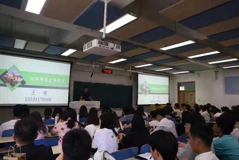 本次讲座共分铁路物流认知及一带一路中欧班列、物流管理职业能力需求、物流类职业能力培养及铁路物流类职业面向四个部分,分别详细介绍了铁路运行管理结构及运输组织管理重点、现代物流发展的热点、铁路物流典型案例和铁路物流发展前景。讲座的内容以图文并茂的方式呈现,既全面又通俗易懂,得到了物流系同学的一致好评。讲座不仅从互联网、云计算为基础支撑的角度介绍了铁路智慧物流的发展,也为当代物流类专业学生就业提供了基于铁路物流维度的选择。