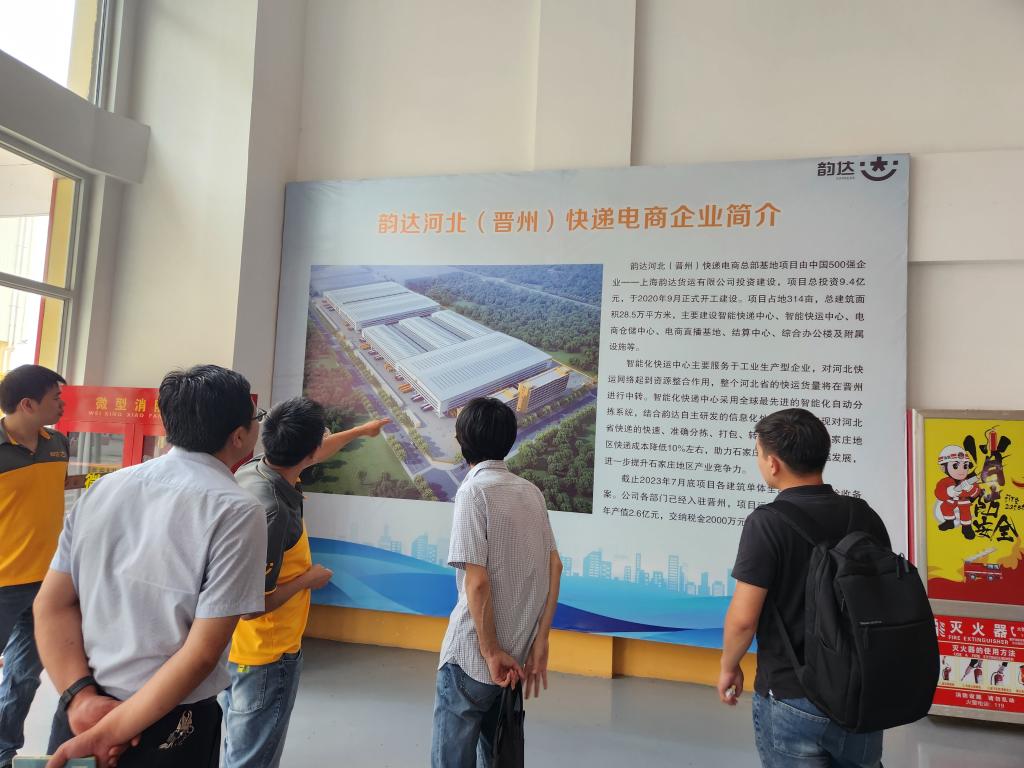 在韵达河北(晋州)快递电商总部基地,调研组详细了解了公司运营情况、项目进展情况,听取了相关项目负责人的汇报。调研组提出,促进石家庄商贸物流的发展和晋州市县域经济的持续繁荣,需要发挥校地合作的合力,更需要校方将自身的合作资源积极与地方进行对接。对韵达晋州基地而言,推进物流提质、增效、降本,是经济高质量发展的重要抓手,可由北京络捷斯特科技发展有限公司技术研发团队牵头在物流网点的智慧布局上进行规划,促进物流业与晋州乃至河北地区优势产业深度融合,由点带面形成产业链聚集效应,做到降成本、优服务、惠民生,促进当地物流体系建设高质量发展。