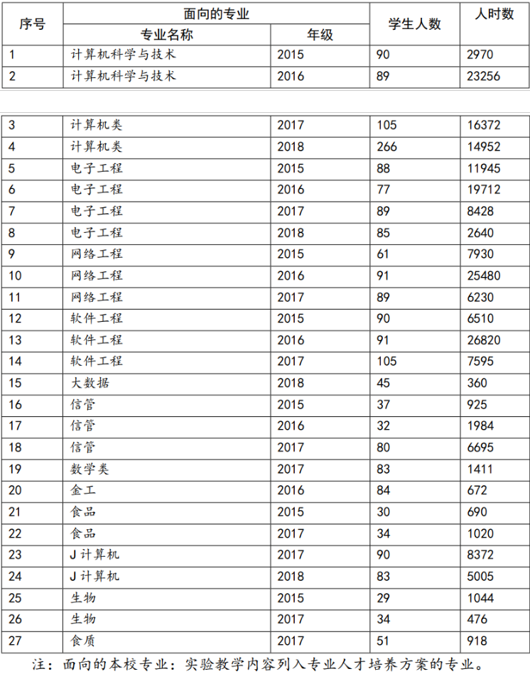 (一)示范中心实验教学面向所在学校专业及学生情况